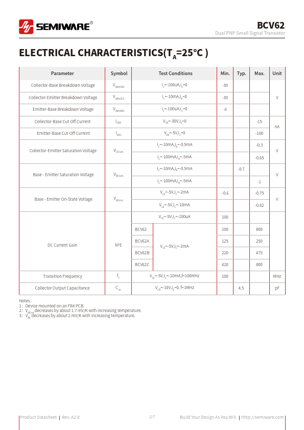 | Datasheet | BCV62A BCV62 Datasheet (PDF) |