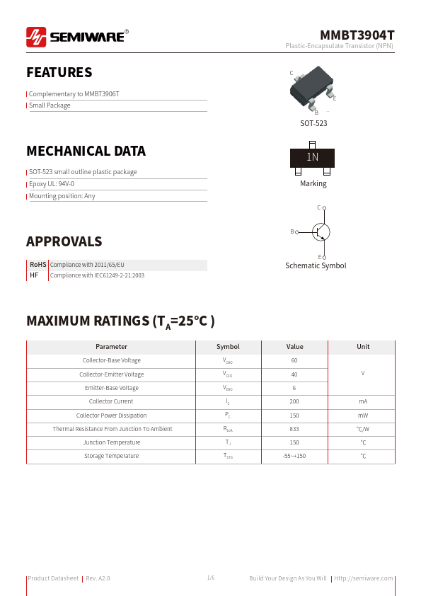 | Datasheet | MMBT3904T-Semiware.pdf |