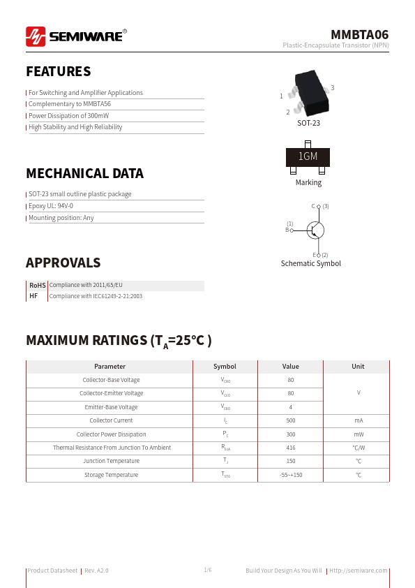 | Datasheet | MMBTA06-Semiware.pdf |
