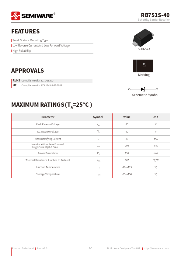 RB751S-40 | Schottky barrier Diodes | Transys |