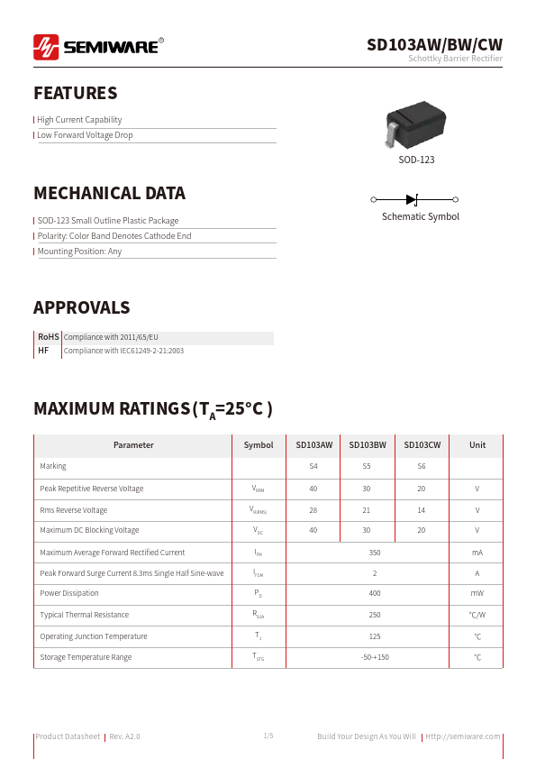 | Datasheet | SD103CW SD103AW Datasheet (PDF) |