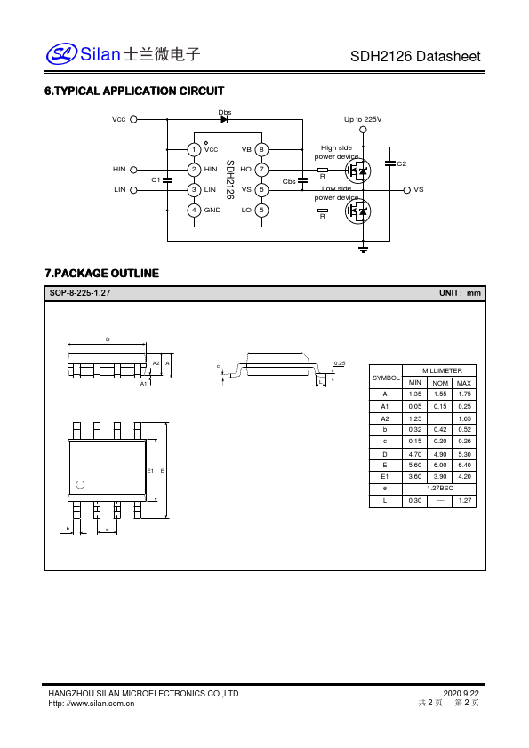 The SDH2126 is high voltage N-type power MOSFET and IGBT half bridge driver, whose built-in VCC undervoltage lockout prevents the power device from working under low control voltage, and high-/low-side double high input interlock protection avoids the simultaneous conduction of both high side and low side MOSFETs.