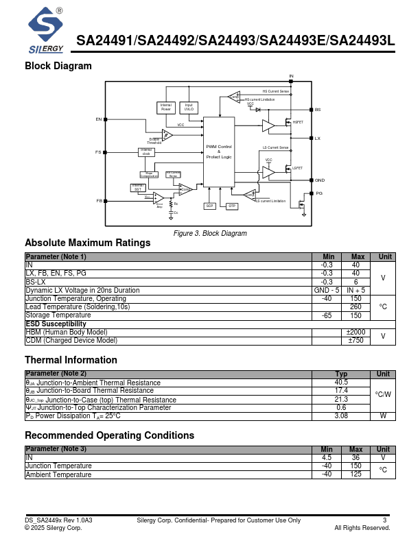The SA2449x is a high-efficiency synchronous step-down DC-DC converter capable of delivering a load current of 1A/2A/3A. It operates over a wide input voltage range of 4.5V to 36V and integrates main and synchronous MOSFET switches with very low RDS(ON) to minimize conduction loss. The SA2449x uses a peak current control architecture.