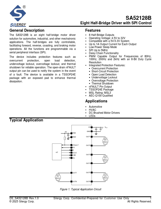 SA52128B is Eight Half-Bridge Driver manufactured by Silergy.
