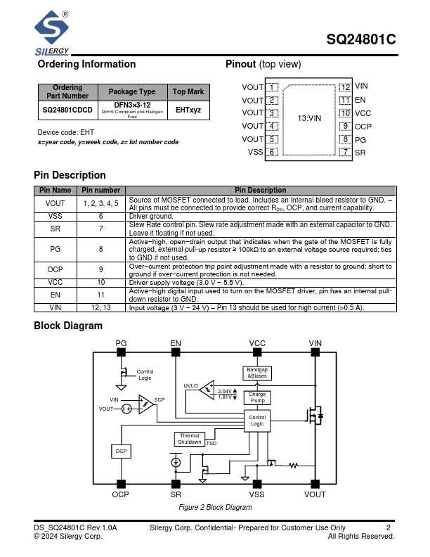 The SQ24801C load switch is an ultra-low onresistance, pact device with inrush current limit via programmable soft−start. The device provides power good signaling for system status monitoring and downstream load control. With soft-start capabilities to reduce inrush current and low power consumption in a small footprint, the SQ24801C is ideal for power management and hot-swap applications.