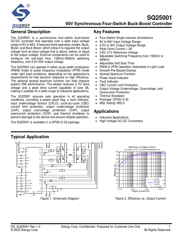 The SQ25001 is a synchronous four-switch buck-boost DC/DC controller that operates over a wide input voltage range of 6V to 60V.