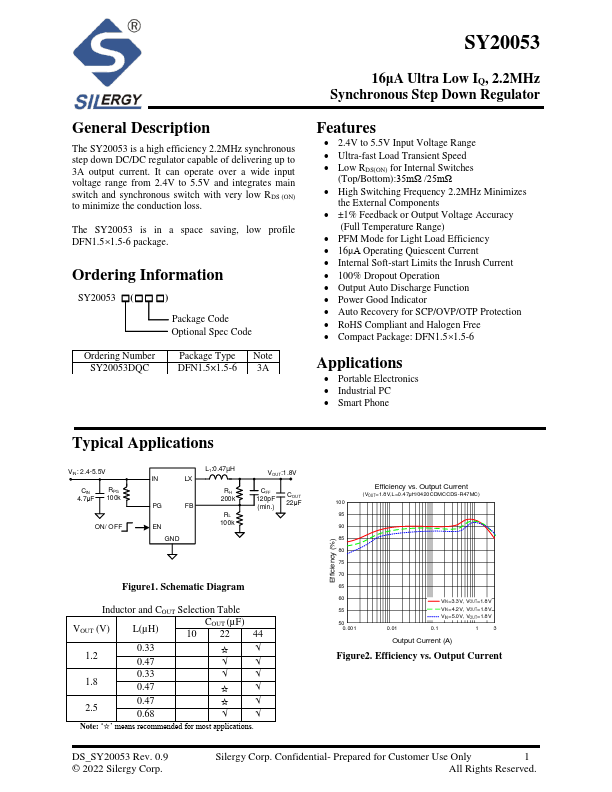 SY20053 is 2.2MHz Synchronous Step Down Regulator manufactured by Silergy.