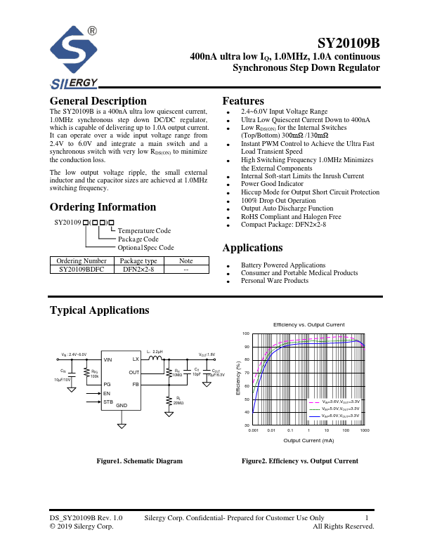 SY20109B is 1.0A continuous Synchronous Step Down Regulator manufactured by Silergy.