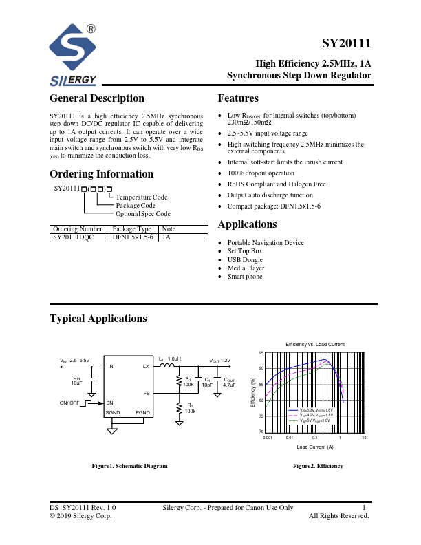 SY20111 is 1A Synchronous Step Down Regulator manufactured by Silergy.