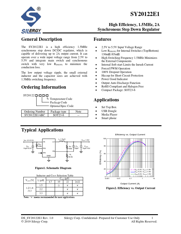 SY20122E1 is 2A Synchronous Step Down Regulator manufactured by Silergy.