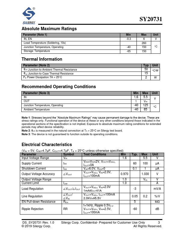 SY20731 is Low Dropout 1A LDO Regulator manufactured by Silergy .