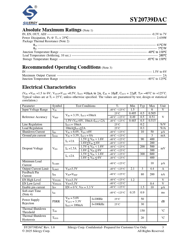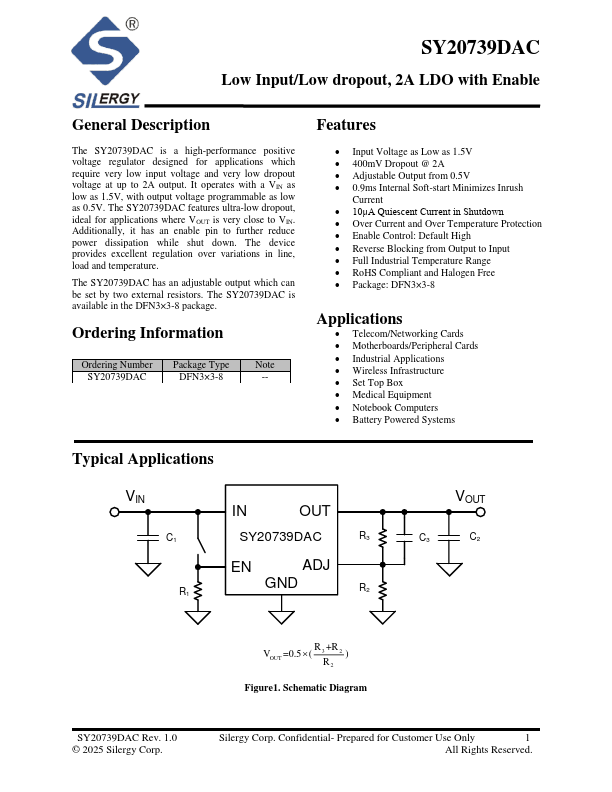 The SY20739DAC is a high-performance positive voltage regulator designed for applications which require very low input voltage and very low dropout voltage at up to 2A output. It operates with a VIN as low as 1.5V, with output voltage programmable as low as 0.5V.