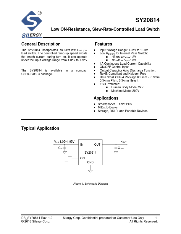 The SY20814 incorporates an ultra-low RDS (ON) load switch. The controlled ramp up speed avoids the inrush current during turn on.