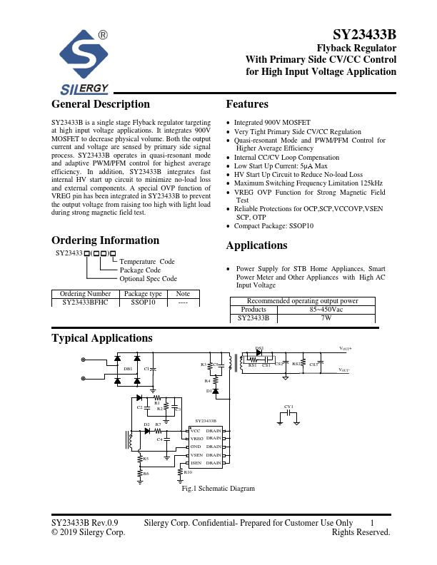 - In addition, SY23433B integrates fast internal HV start up circuit to minimize no-load loss and external components