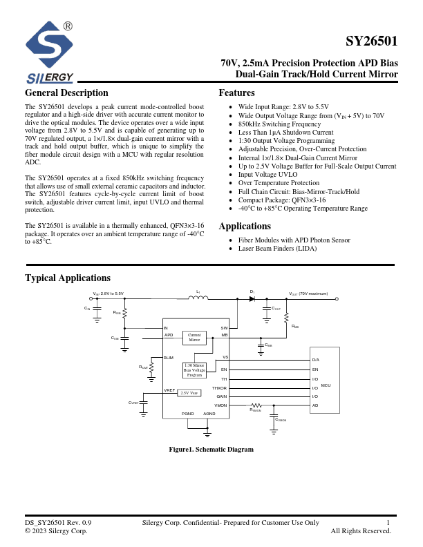 The SY26501 is available in a thermally enhanced, QFN3×3-16 package. It operates over an ambient temperature range of -40°C to +85°C.