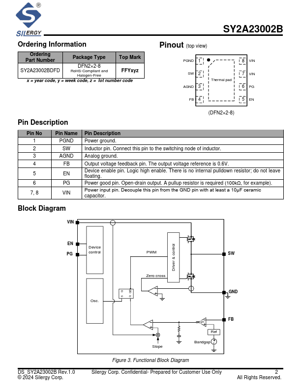 The SY2A23002B is available in a pact DFN2x2-8 package.