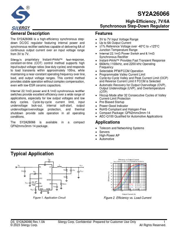 The SY2A26066 is a high-efficiency synchronous stepdown DC/DC regulator featuring internal power and synchronous rectifier switches capable of delivering 6A of continuous output current over an input voltage range from 3V to 7V.