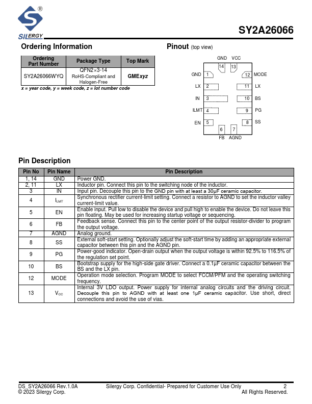 The SY2A26066 is available in a pact QFN2mmx3mm-14 package.