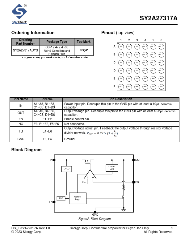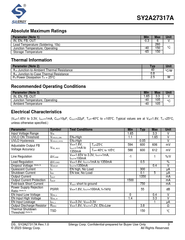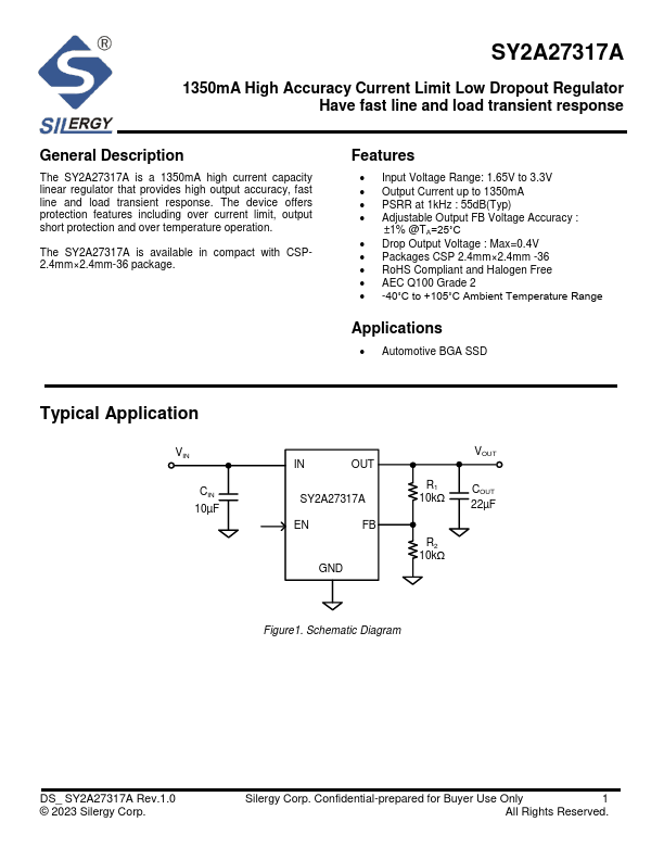 The SY2A27317A is a 1350mA high current capacity linear regulator that provides high output accuracy, fast line and load transient response. The device offers protection.