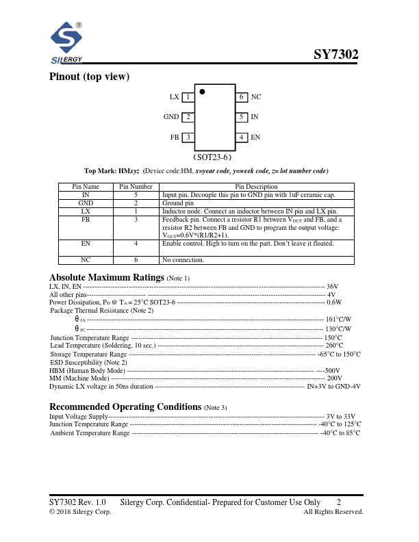 SY7302 is a high efficiency, current-mode control Boost DC to DC regulator with an integrated 200mΩ RDS(ON) N-channel MOSFET. The fixed 1MHz switching frequency and internal pensation reduce external ponent count and save the PCB space. The build-in internal soft start circuitry minimizes the inrush current at start-up.