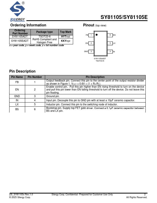 The SY81105x is available in a pact TSOT23-6 package.