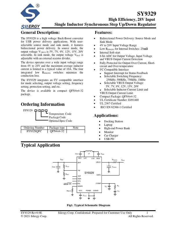 SY9329 is Single Inductor Synchronous Step Up/Down Regulator manufactured by Silergy.