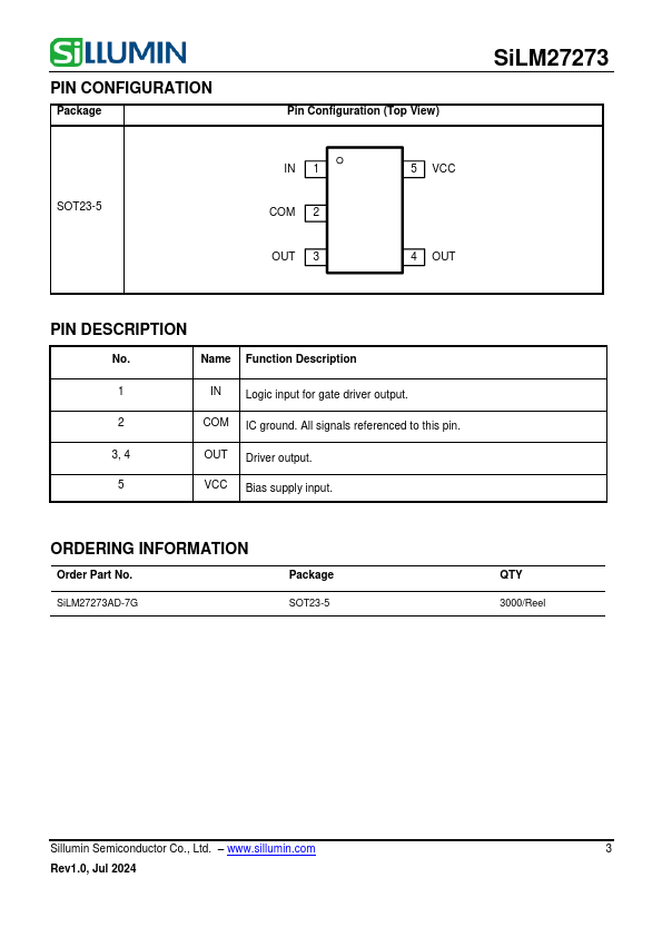 The SiLM27273 is a single-channel, high-speed, low-side gate driver device which can effectively drive MOSFET and IGBT power switches.