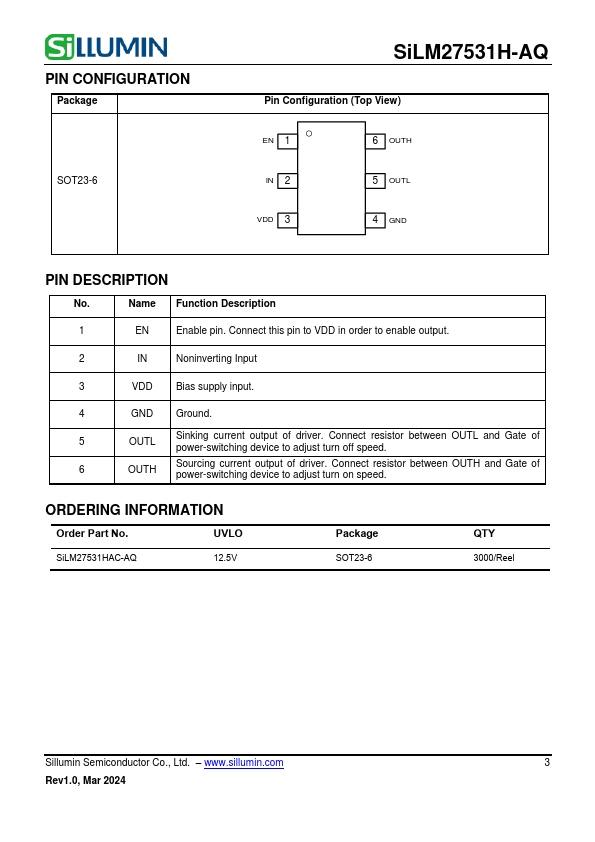 The SiLM27531H-AQ single-channel, high-speed, low-side gate driver device can effectively drive MOSFET and IGBT power switches.