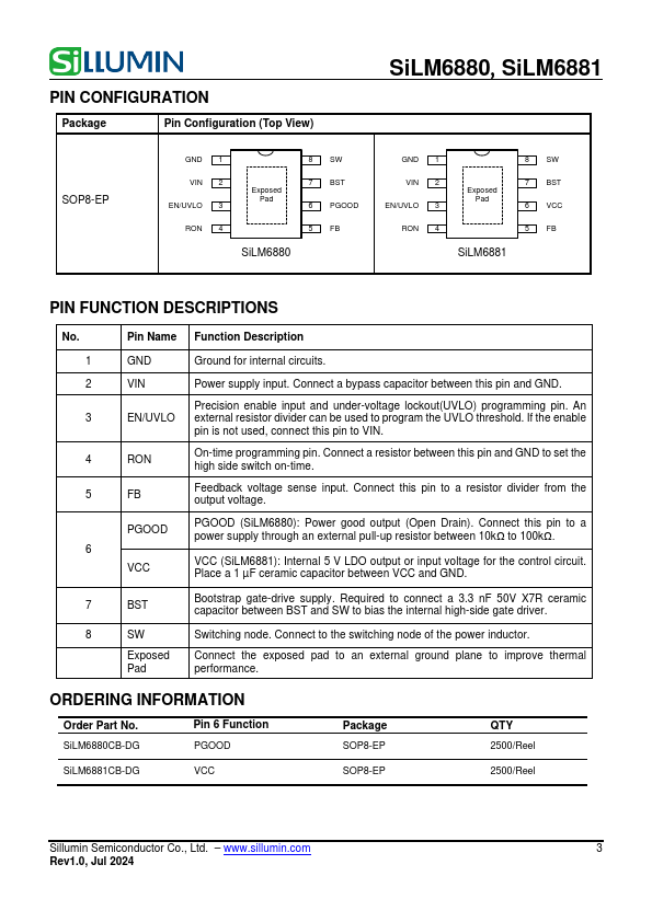 The SiLM6880/81 is a high efficiency synchronous step down regulator.
