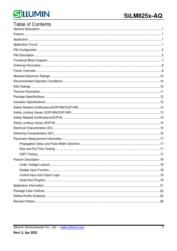 FEATURE The SiLM825x-AQ isolated driver family is an isolated dual channel gate driver with different configurations. The SiLM8253/4-AQ are configured as high-side/lowside drivers, while the SiLM8255-AQ are configured as dual drivers. The peak source output current is 4.0A and the peak sink output current is 7.0A.