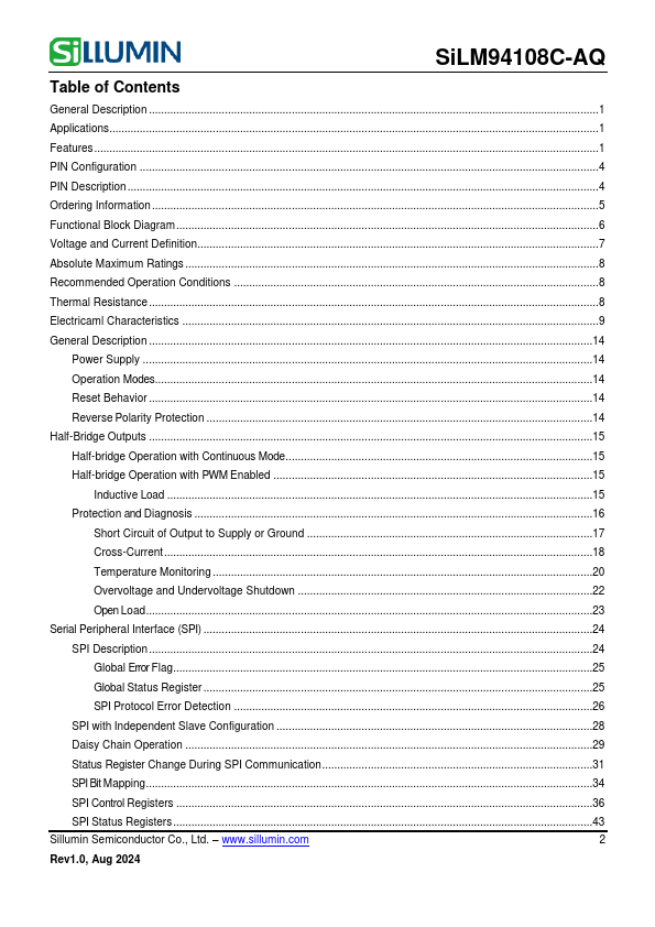 The SiLM94108C-AQ is a protected eight-fold halfbridge driver designed especially for automotive motion control applications such as Heating, Ventilation and Air Conditioning (HVAC) flap DC motor control.