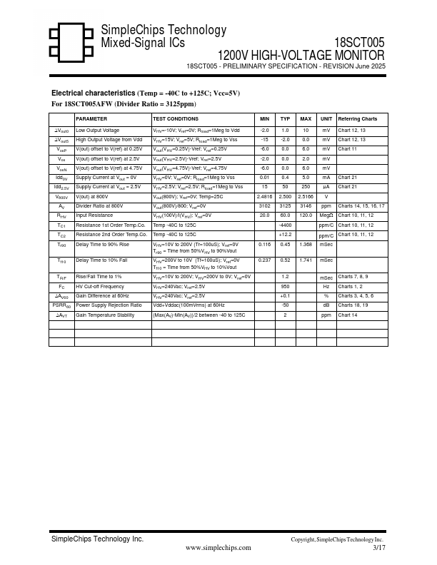 - 3125ppm Divider Ratio (2.500V at 800V)