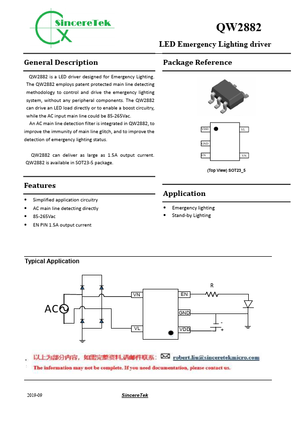 Package Reference QW2882 is a LED driver designed for Emergency Lighting.