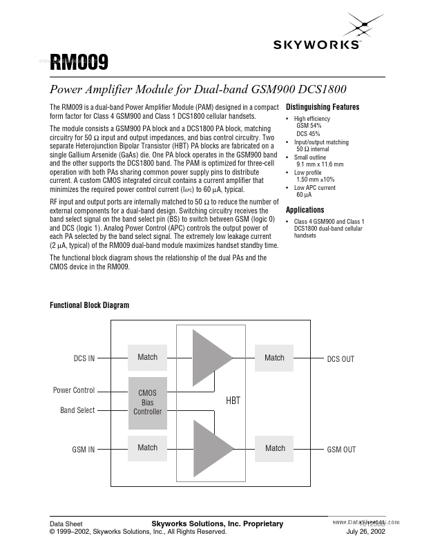 RM009 Datasheet | Skyworks Solutions