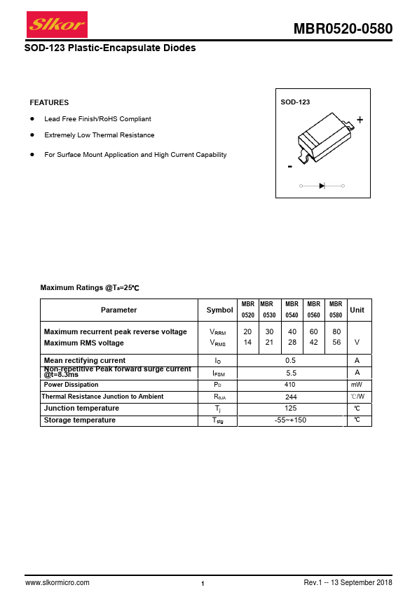 | MBR0560 | SOD-123 Plastic-Encapsulate Diodes |