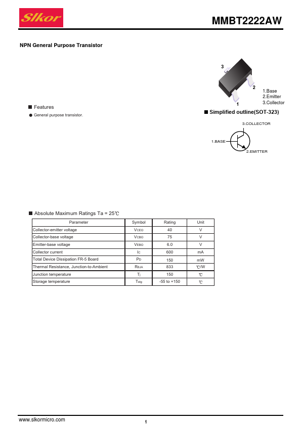 | Datasheet | MMBT2222AW-Slkor.pdf |