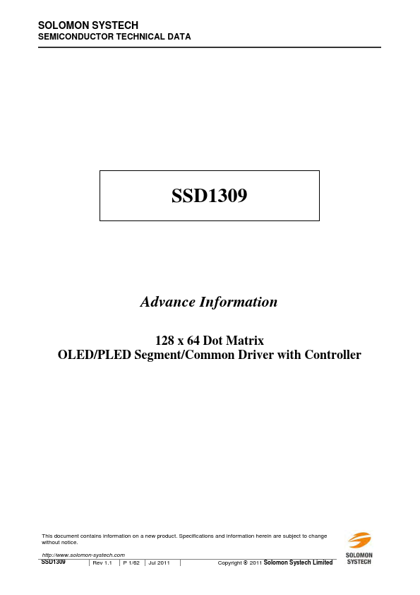 SSD1309 is a single-chip CMOS OLED/PLED driver with controller for organic / polymer light emitting diode dot-matrix graphic display system. It consists of 128 segments and 64 mons. This IC is designed for mon Cathode type OLED panel.
