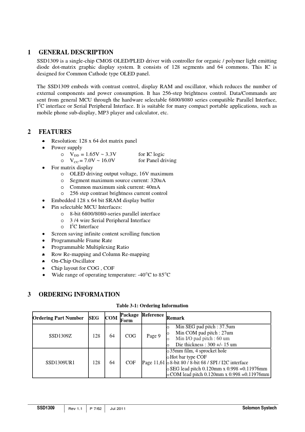SSD1309 Description