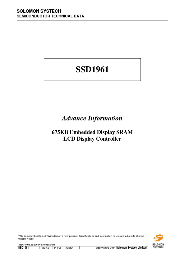 This document contains information on a new product. Specifications and information herein are subject to change without notice. http://.solomon-systech.