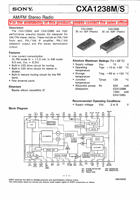 | CXA1218S | NTSC / PAL Decoder | Sony |