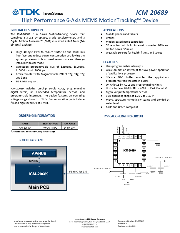 | Download | ICM-20689 Datasheet (PDF) |