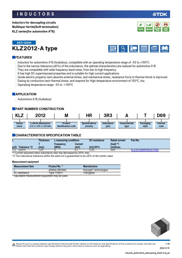 KLZ2012MHR3R3ATD69 datasheet by TDK Corporation.