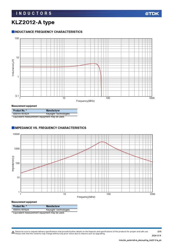 INDUCTORS Inductors for decoupling circuits Multilayer ferrite(Soft termination) KLZ series(for automotive A2B) KLZ2012-A type.