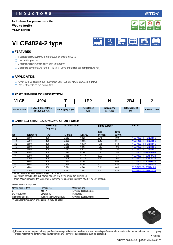 VLCF4024-2 is Inductors manufactured by TDK Corporation.