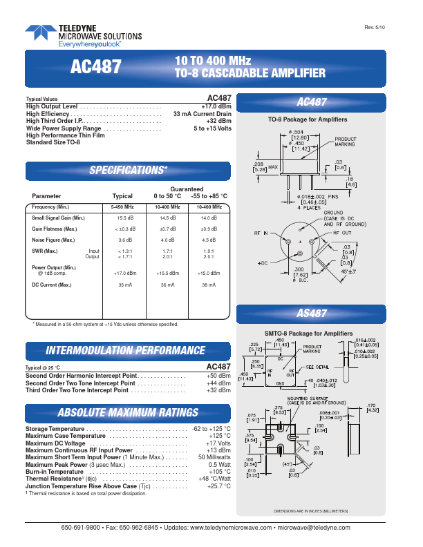 | AC487 | Cougar Components | TO-8 CASCADABLE AMPLIFIER |