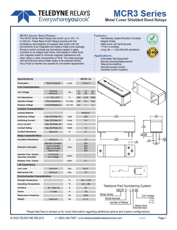 | Description | Metal Cover Shielded Reed Relays |