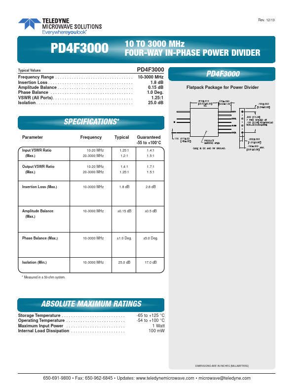 | Description | FOUR-WAY IN-PHASE POWER DIVIDER |