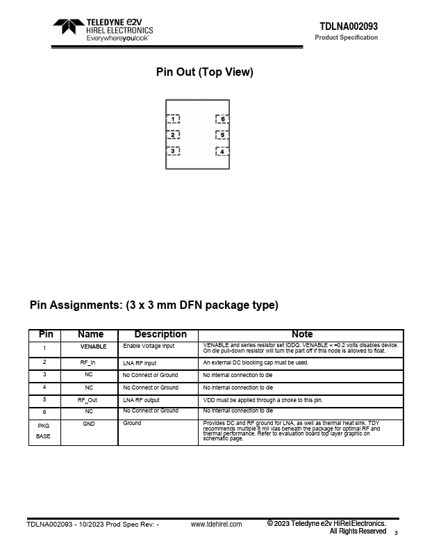 The TDLNA002093 ultra-low noise amplifier offers industryleading noise figure (NF) and gain performance and can be tuned over a wide range of frequencies from roughly 1.0 to 6.0 GHz.