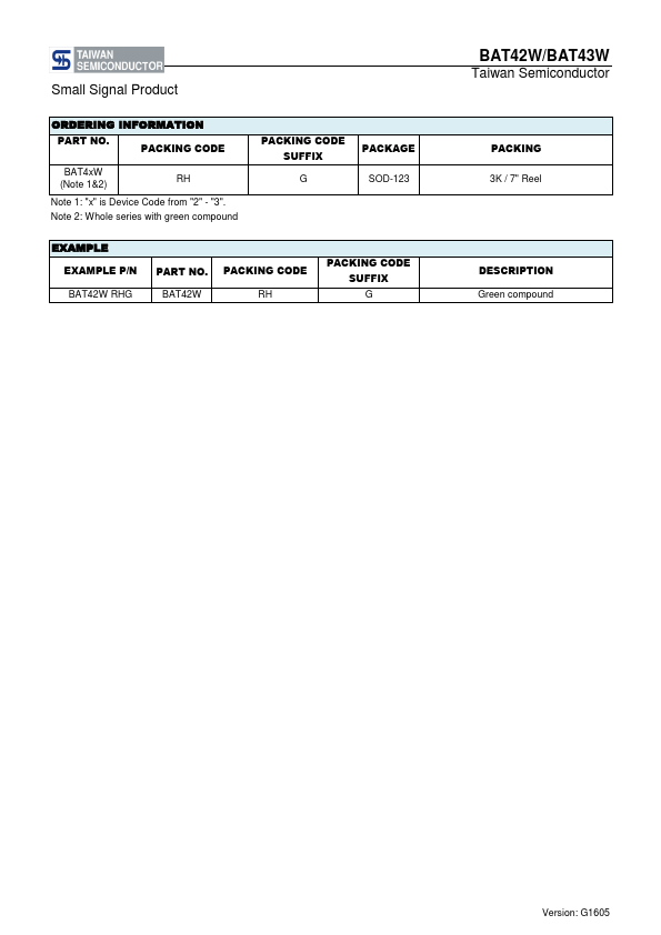 Overview: Small Signal Product BAT42W/BAT43W Taiwan Semiconductor Surface Mount, Switching Schottky Barrier.