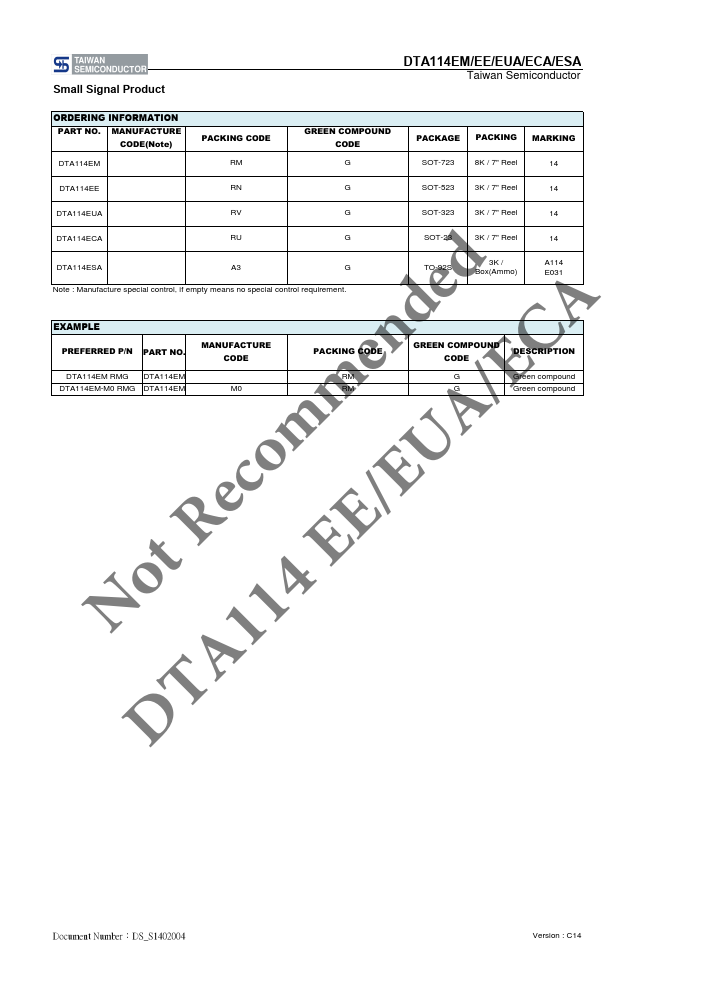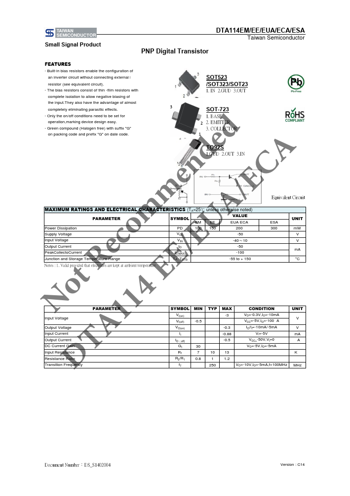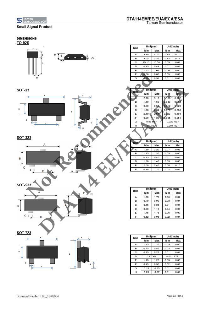 Green pound Green pound Document Number:DS_S1402004 Version : C14 Small Signal Product DTA114EM/EE/EUA/ECA/ESA Taiwan Semiconductor DIMENSIONS TO-92S DIM.